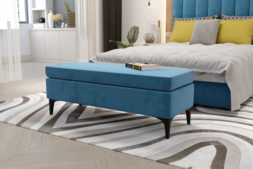 Интерьерные пуфы ОАЗИС - классическая модель, представляет собой мягкую скамейку без спинки и устанавливается у нижней части кровати. На такой предмет интерьера можно присесть, поставить ноутбук или поднос с завтраком (сидушка не съемная). Прикроватный пуф становится украшением спальни. Выглядит интерьер, как в глянцевом журнале. Стильно, красиво.