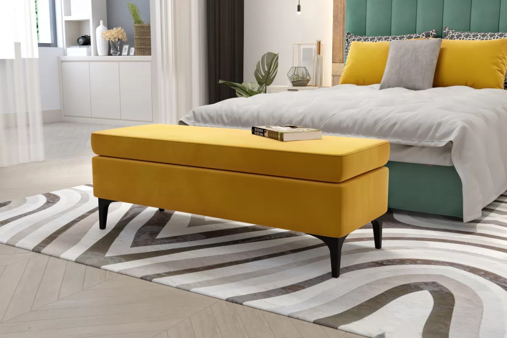 Интерьерные пуфы ОАЗИС - классическая модель, представляет собой мягкую скамейку без спинки и устанавливается у нижней части кровати. На такой предмет интерьера можно присесть, поставить ноутбук или поднос с завтраком (сидушка не съемная). Прикроватный пуф становится украшением спальни. Выглядит интерьер, как в глянцевом журнале. Стильно, красиво.