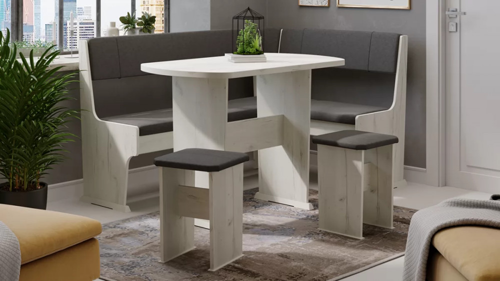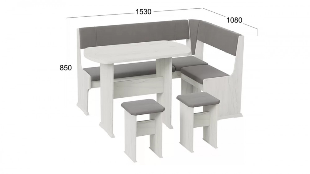 Дополнительная информация: В состав входят: стол, угловая скамья и два табурета