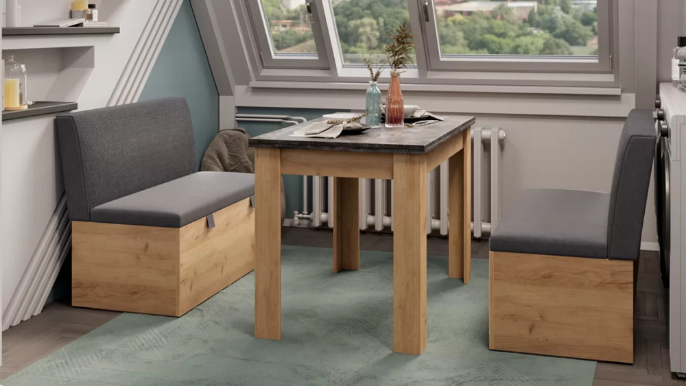 Скамья прямая «Мальта» ГН №1 Дуб Крафт золотой, Микровелюр Linea Grande 66/Connect 66 (серо-коричневый) в Тюмени