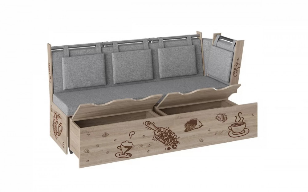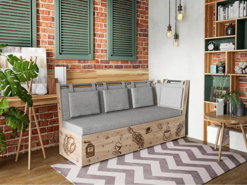 Скамья со спальным местом РОДЕНГО Дуб Сонома / Рогожка Серая в Тюмени