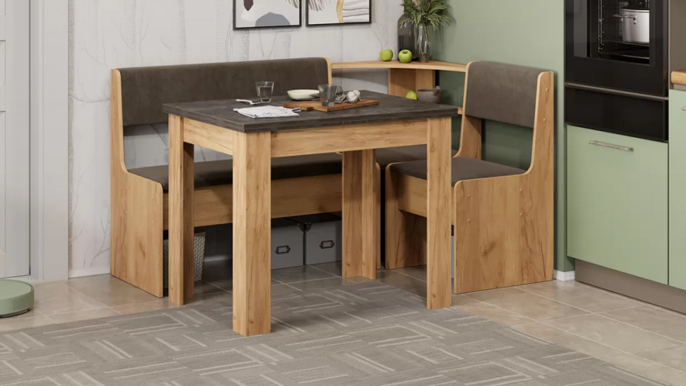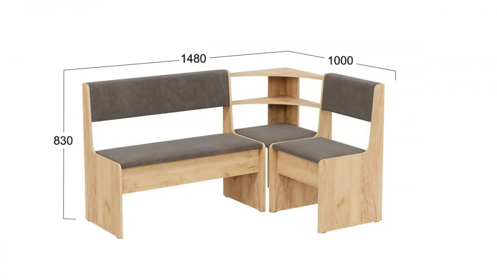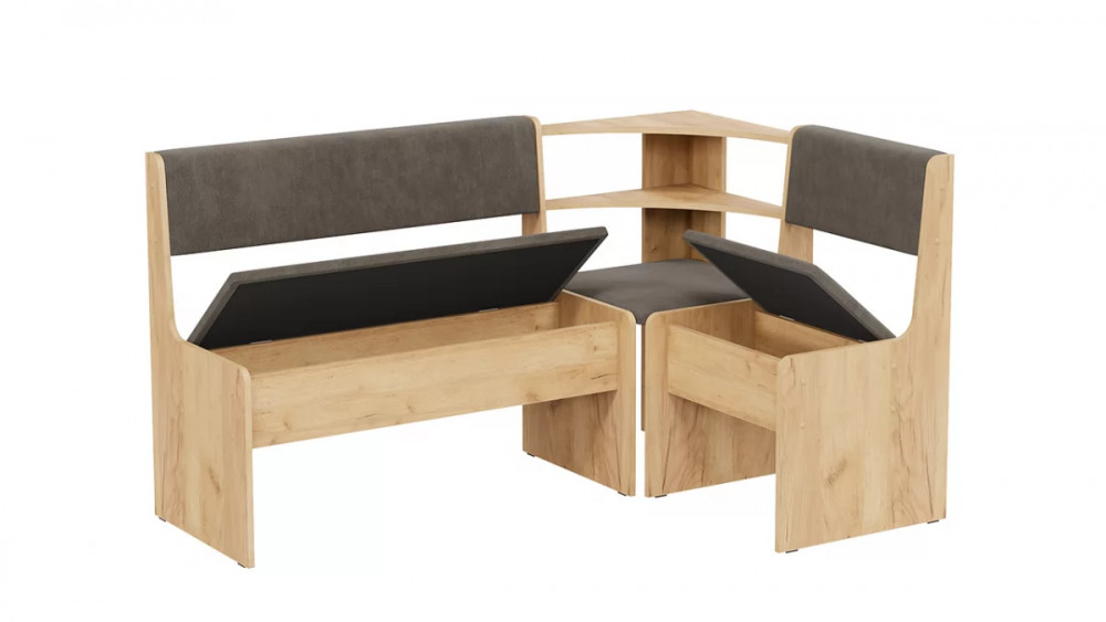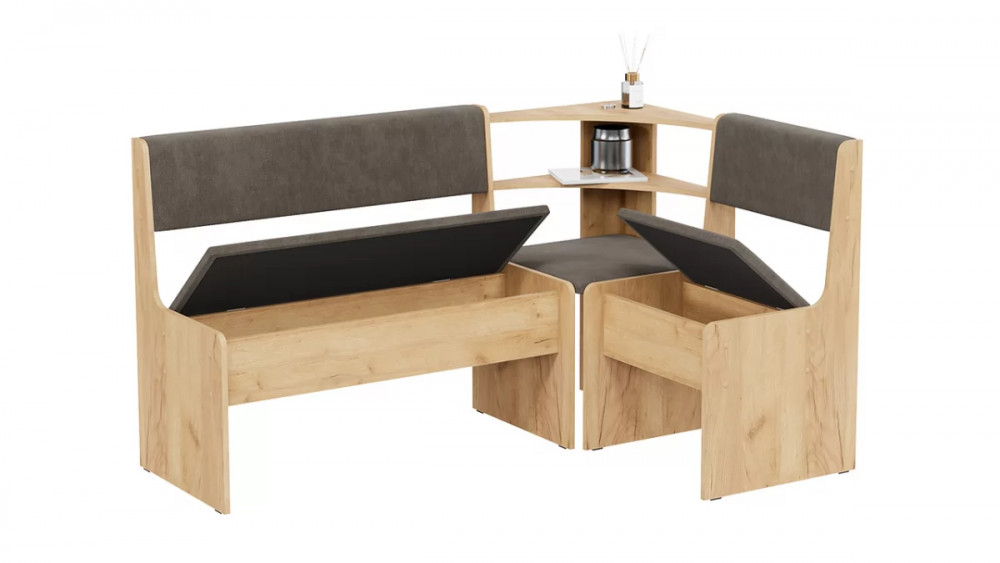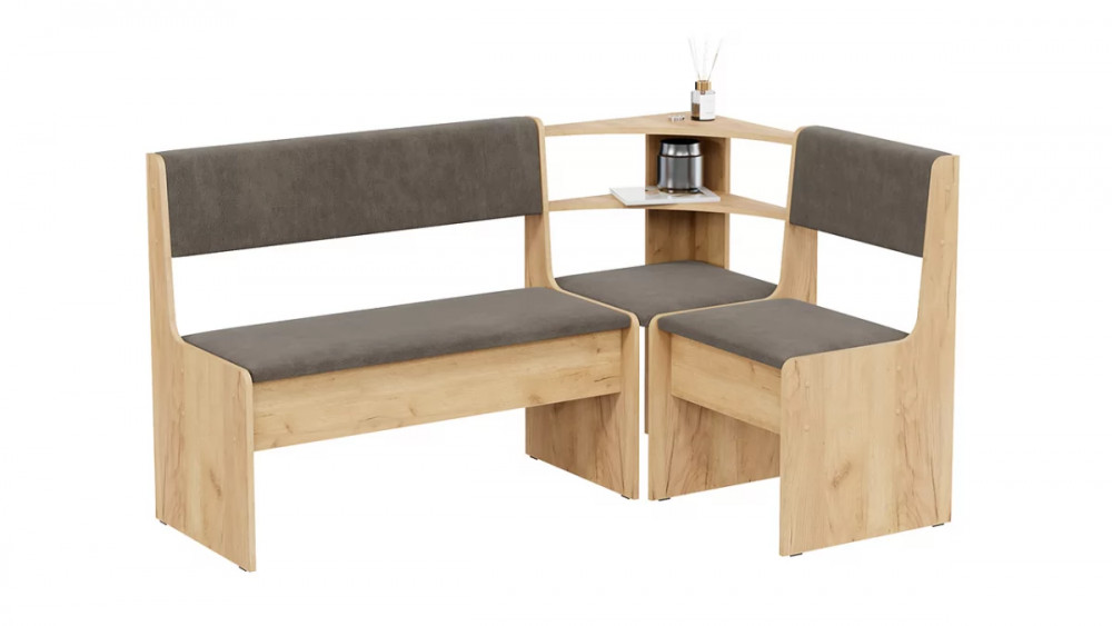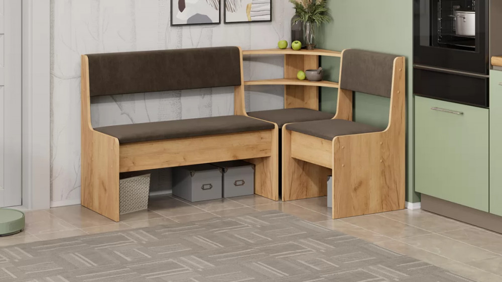 Скамья угловая «Ларго» Дуб Крафт золотой, Велюр Коричневый в Тюмени