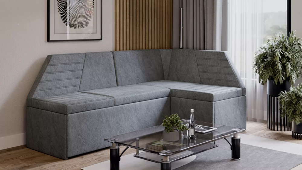 Скамья угловая «Лондон» со спальным местом Исп.2 Дуб Сонома трюфель, Микровелюр Wellmart Silver в Тюмени