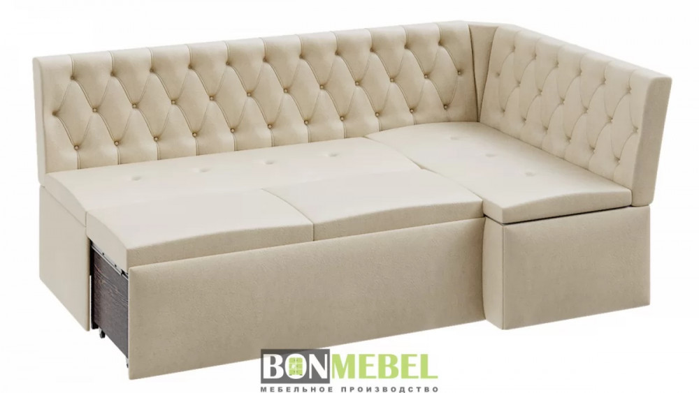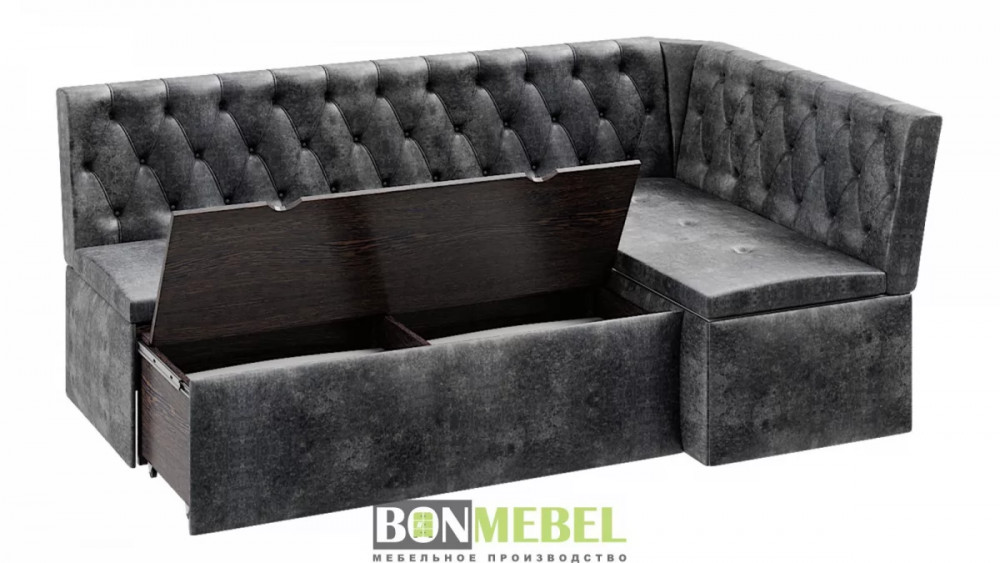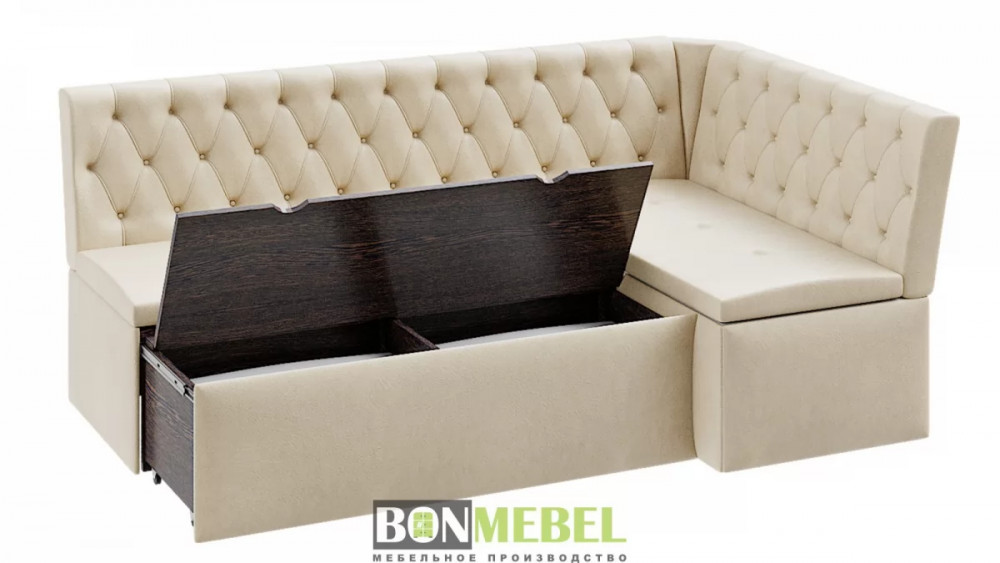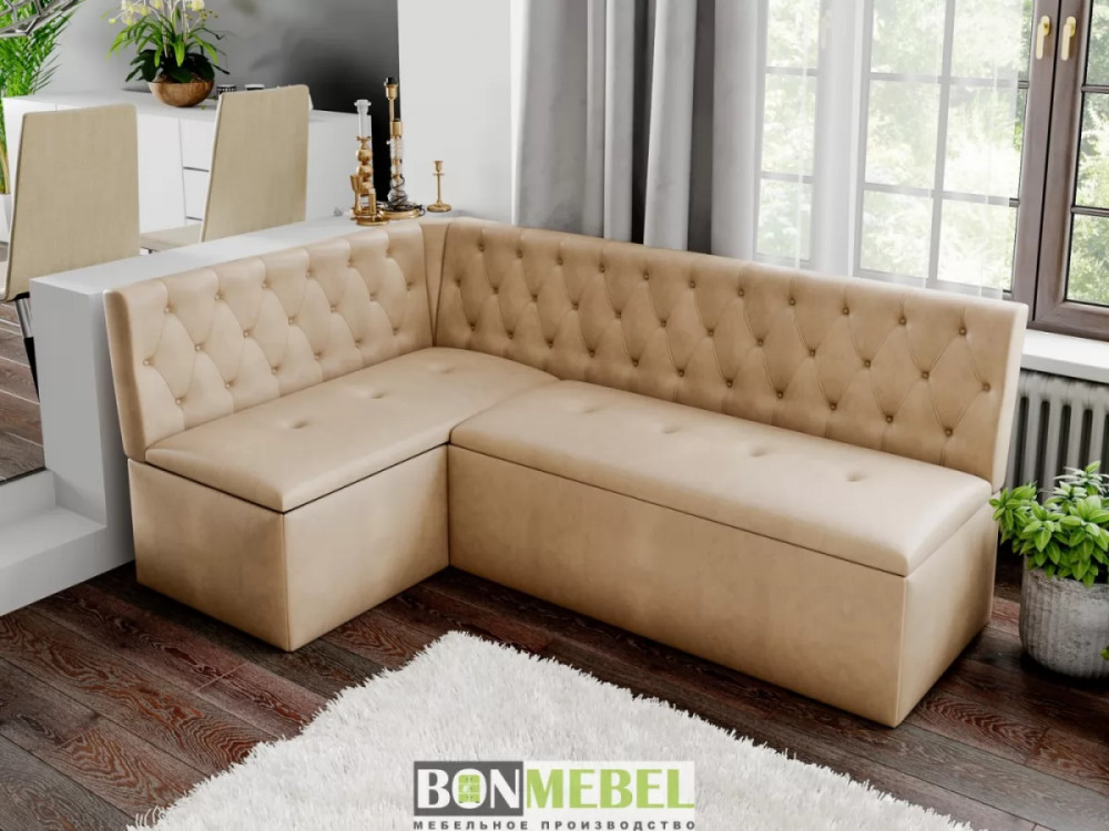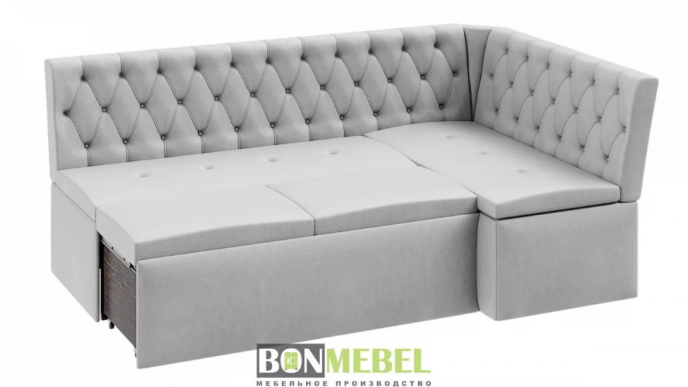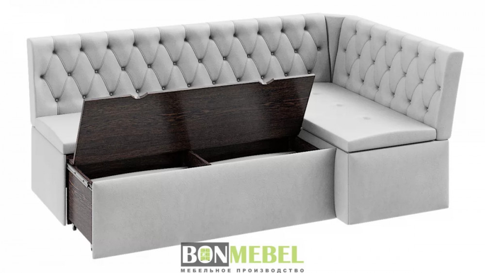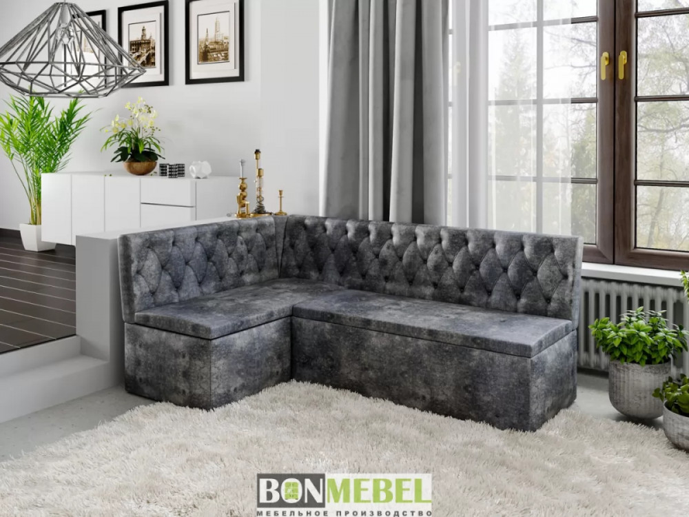 Угловая скамья Квадро тип1 Классик придется по вкусу как поклонникам минимализма так и ценителям роскоши. Спинки изделия декорированы каретной стяжкой и инкрустированы пуговицами, привлекая внимание оригинальным дизайном. Кроме того, уголок оборудован спальным местом, а наличие вместительных ниш для хранения под сидениями придают изделию функциональность.