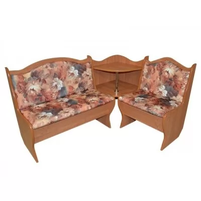 Классический уголок с полочкой для небольшой кухни. Под сиденьем ящики для хранения.