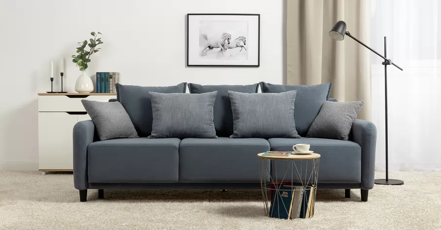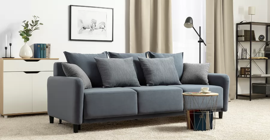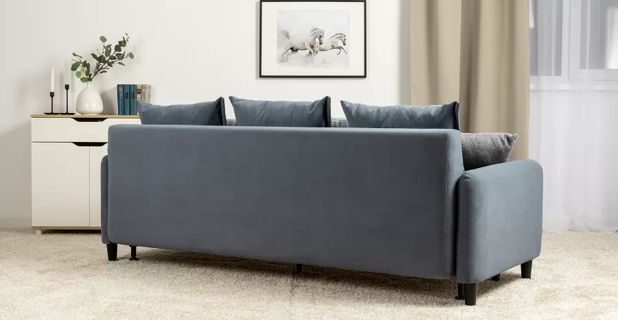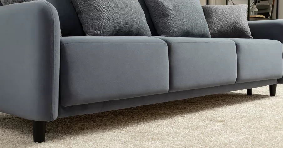 Объемные подушки обеспечивают комфортный отдых. В комплекте 5 двусторонних приспинных подушек и 2 декоративные подушки-думки в ткани букле. Надежный механизм трансформации и ровное спальное место обеспечивают полноценный сон.