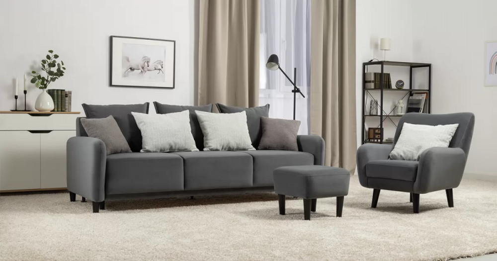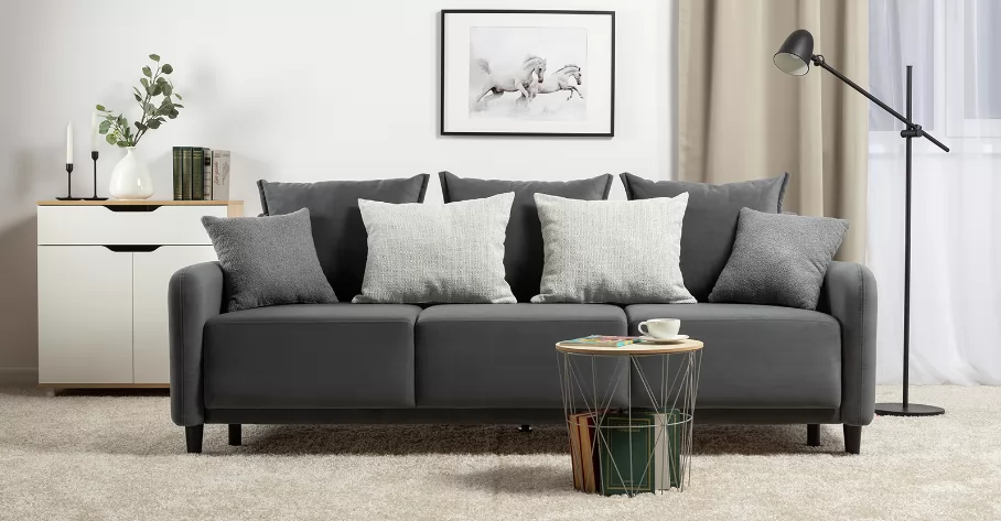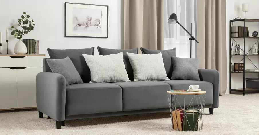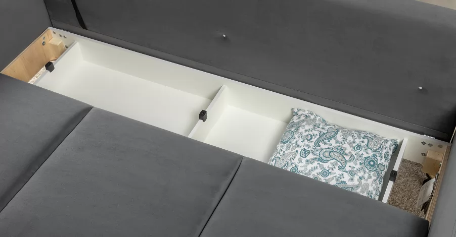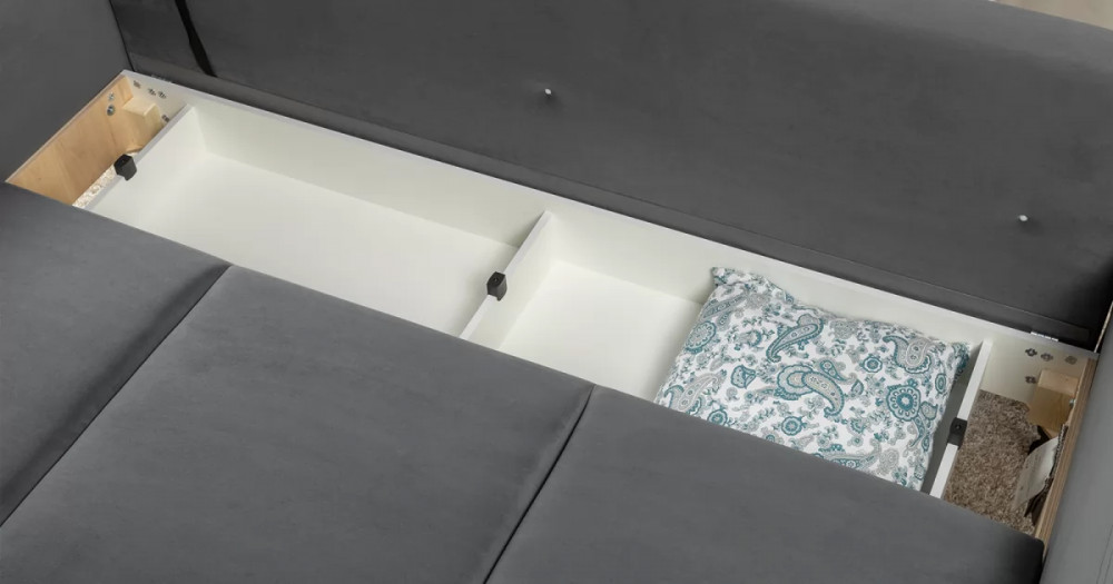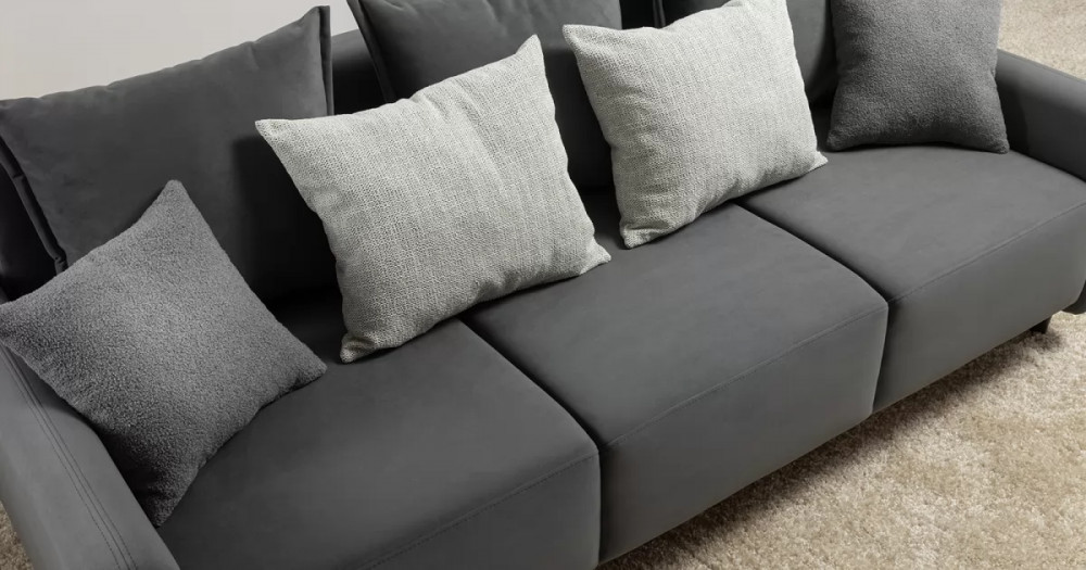 Объемные подушки обеспечивают комфортный отдых. В комплекте 5 двусторонних приспинных подушек и 2 декоративные подушки-думки в ткани букле. Надежный механизм трансформации и ровное спальное место обеспечивают полноценный сон.
