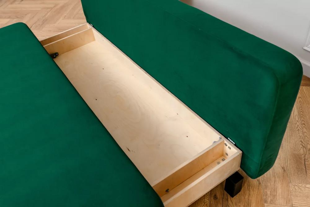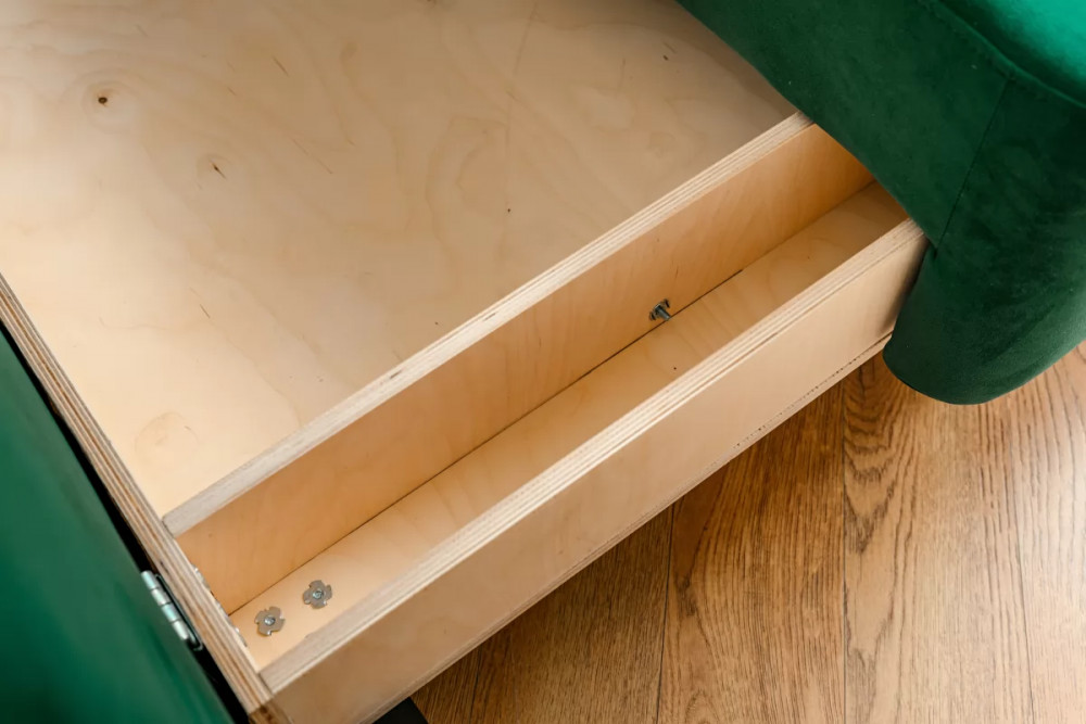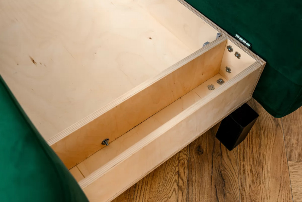 Вместительные потайные ящики в диване добавляют места для хранения.