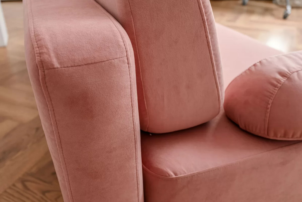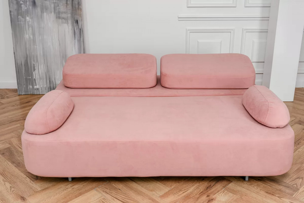 Используемая ткань - износостойкий мебельный велюр. Благодаря, бархатистому велюру диван дарит комфорт всему телу. А износостойкость ткани и лёгкий уход за ней позволяет использовать мебель без дополнительных чехлов. Одно движение руки и пролитый сок или кофе уже не оставят следа на мягкой мебели.