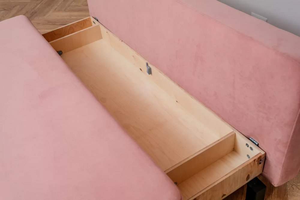 Вместительные потайные ящики в диване добавляют места для хранения.