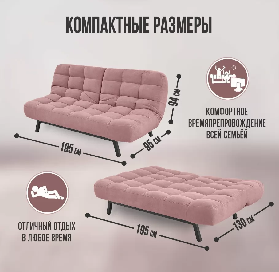 Диван Vita - это компактный РАСКЛАДНОЙ диван со спальным местом 130х195 см. Отлично подойдет для малогабаритных помещений, а также детской комнаты, где необходимо сэкономить пространство, но при этом важно сохранить спальное место. Прекрасная зона отдыха и расслабления для взрослых и детей.