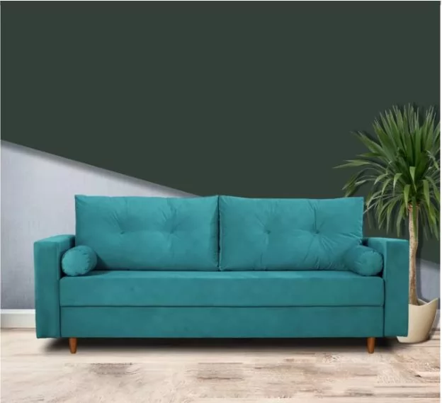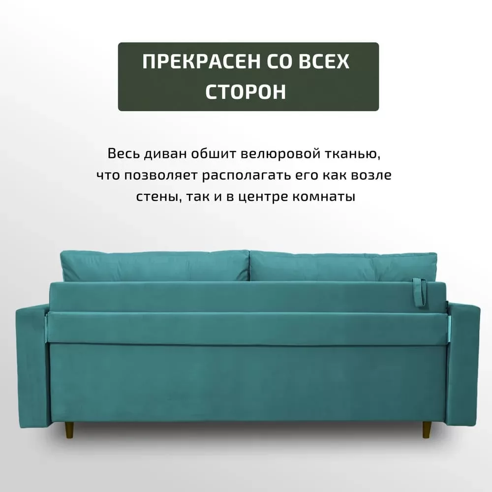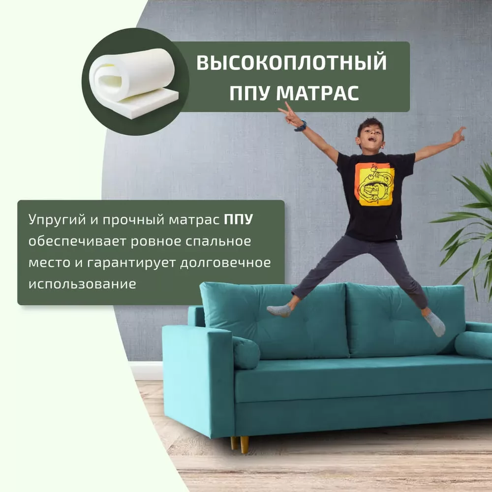 Обивка дивана выполнена в велюре прочная, не прихотлива в чистке, устойчивая, не оставляет зацепов