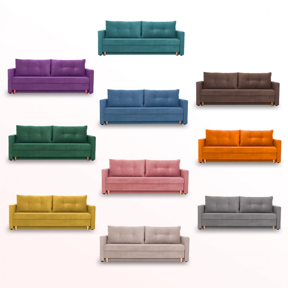 Обивка дивана выполнена в велюре прочная, не прихотлива в чистке, устойчивая, не оставляет зацепов