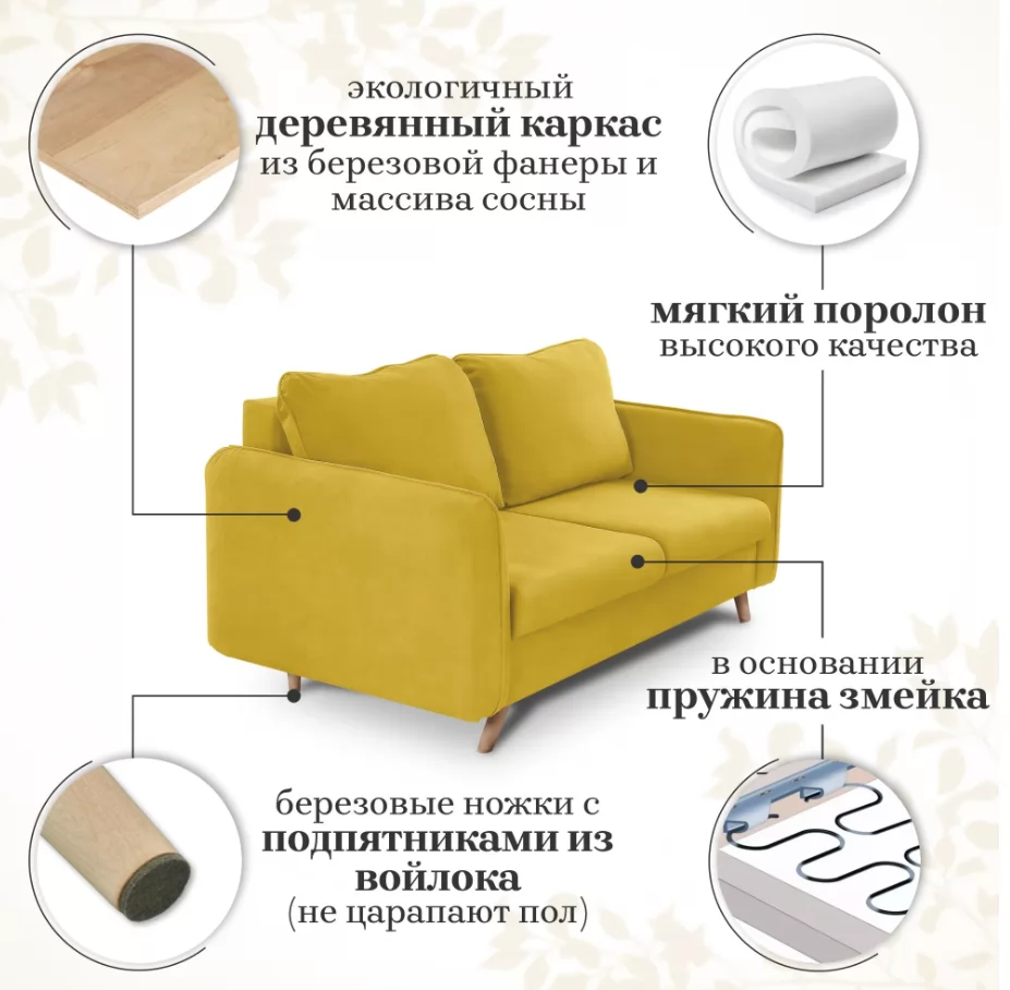 Диван-кровать 4444 Vita 050 жёлтый в Тюмени