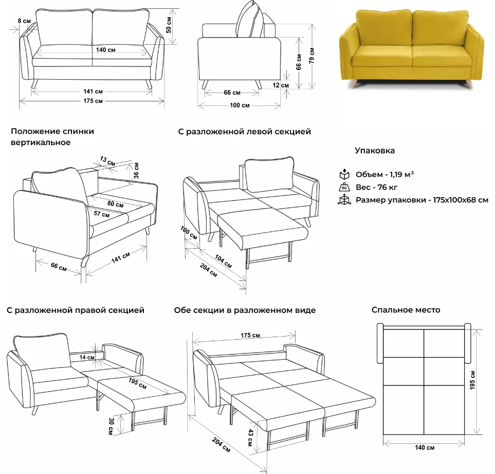 Диван поставляется в собранном виде, нужно только вкрутить ножки.