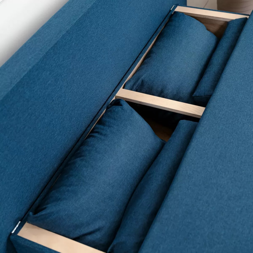 Прямой диван-кровать GENRI с ящиком — это раскладной диван, который сочетает в себе элегантный дизайн и практичность. Встроенный ящик для хранения позволит с легкостью организовать пространство, а раскладной механизм евро книжка превратит диван в удобное спальное место. В основе дивана ЛДСП, ДВП, фанера. поролон EL22\40 толщиной 80 мм. Габаритные размеры в сложенном виде: 195х77х72 см Высота посадочного места от пола 42 см Глубина посадочного места 66 см Высота спинки от сиденья 36 см Ткань: велюр Спальное место 195*130 см. Нагрузка на спальное место 90 кг В комплекте 2 большие подушки и 2 малые подушки (подлокотники)