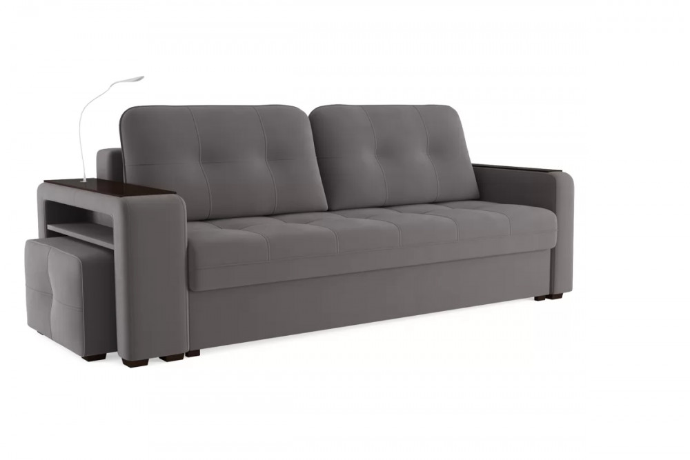 Диван «SMART 4» — это не просто мягкая мебель, а один из ключевых элементов интерьера с обширным функционалом, где эстетика тесно соседствует с комфортом и эргономичностью. Одна боковина оснащена карманом для хранения мелочей и гаджетов, другая боковина совмещает одновременно: рабочую поверхность, за счет широкой накладки, двойной usb - порт и портативную лампу точечного света, которая входит в комплект. Добавить контрастных деталей в интерьер поможет пуф, интегрированный в подлокотник. Этот вариант для современных людей, которые ценят комфорт и удобство отдыха. Мягкое сиденье с легкостью трансформируется в просторное спальное место, на котором смогут утроиться ваши гости. Стильный и уютный, он станет отличным решением, если вы ищите не только красоту, но и комфорт.