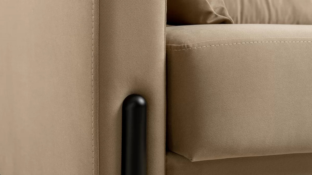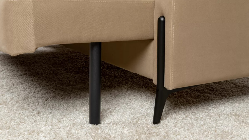 - Металлические опоры плавно переходят в декоративный элемент подлокотника. Декоративная утяжка по приспинным подушкам