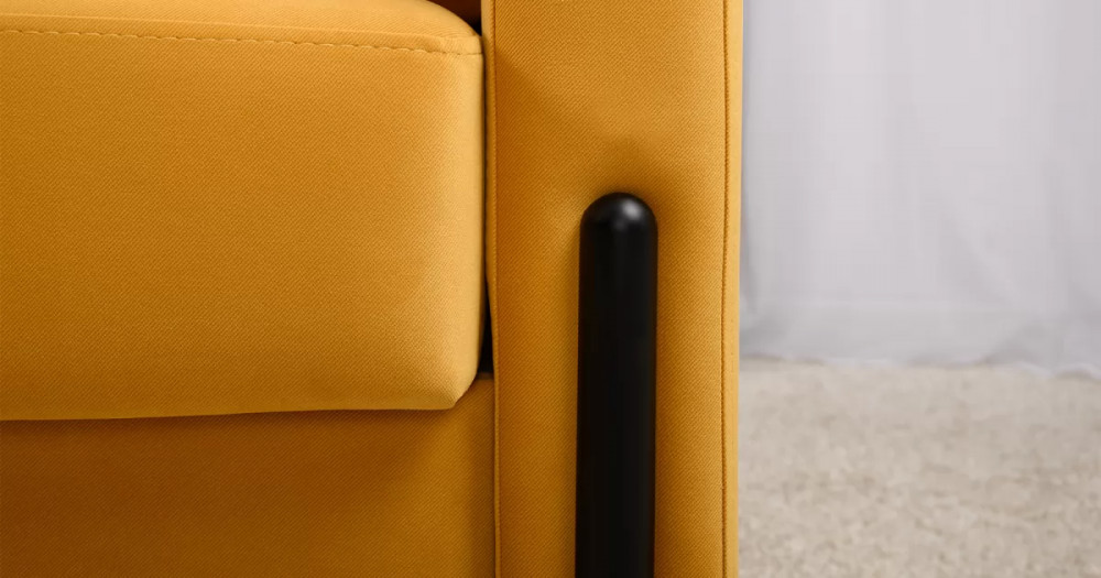 - Металлические опоры плавно переходят в декоративный элемент подлокотника. Декоративная утяжка по приспинным подушкам