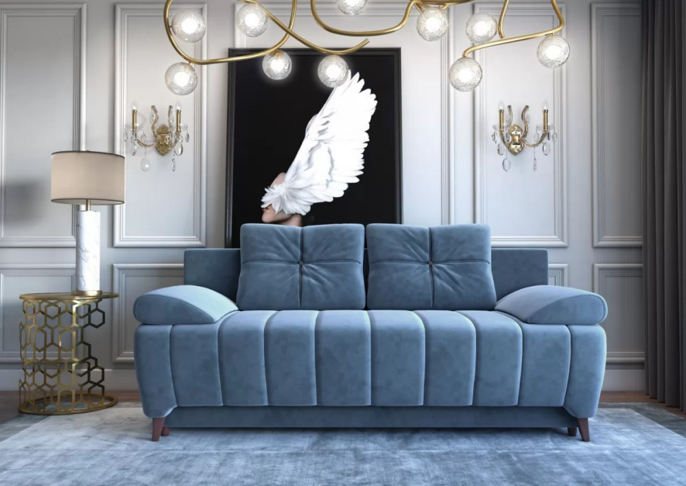 Диван-кровать Тонга - для тех, кто хочет раскрасить свой интерьер в яркие краски и не боится экспериментов. Для его расцветки используются сочные оттенки - бежевый, синий, желтый. Диван-кровать любого из этих цветов станет стильным акцентом для любой комнаты, а элегантности ему добавляет необычная конструкция, одновременно массивная и лаконичная. Не забыли конструкторы и о комфорте - за него здесь отвечают пружинный блок, привычный механизм трансформации еврокнижка, качественные материалы для отделки диван-кровати.