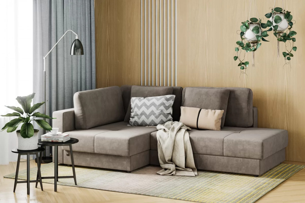 Шикарный диван для домашнего отдыха и большой компании. Идеальное решения для различных стилей: скандинавский, минимализм, лофт, современный. Наличие подспинных подушек обеспечивает поистине комфортный отдых, с их помощью можно регулировать глубину посадочного места. Полный угол позволит полностью заполнить свободное пространство и максимально его использовать. Главной отличительной особенностью является длина матрасов. Она одинаковая. По принципу работы диван напоминает ножницы. Удобство использования дивана заключается в поворотном механизме трансформации. Диван очень просто раскладывается и принимает исходное положение, выкатной механизм не требует значительных усилий при трансформации. Для создания спального места необходимо повернуть сиденье на 90 градусов и зафиксировать его крючком, находящимся под козырьком сиденья.