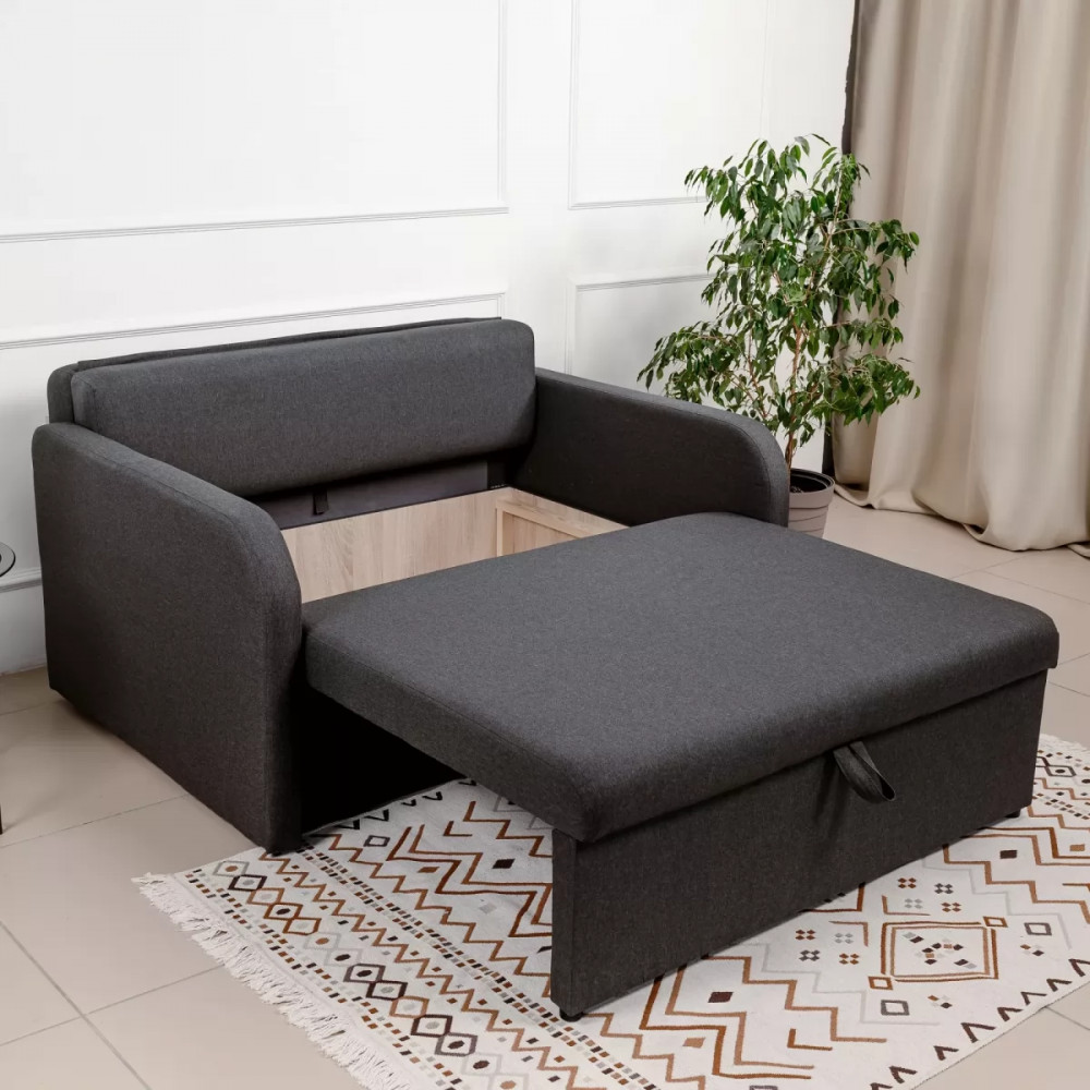 Габаритные размеры (Ш*В*Г) 1200*770*1050 Спальное место (мм) 1200*1900 Высота посадочного места (мм) 440 Глубина посадочного места (мм) 800 Высота спинки (мм) 300 Ширина подлокотника (мм) 80 Описание: Механизм трансформации: еврокнижка Каркас: ЛДСП, фанера, брус хвойных пород Элементы сидения и спальная часть: ППУ Материал обивки: микророгожка Наполнитель подушек: синтепух Особенности: В комплект входит подушка Короб для постельных принадлежностей имеется Объем – 1,1 м.куб, вес – 60 кг