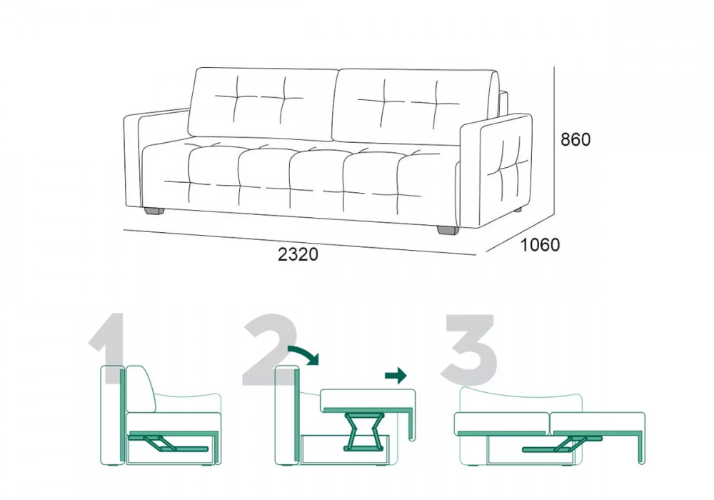 | Размер(Ш*Г*В) | 2320х1060х860 мм |