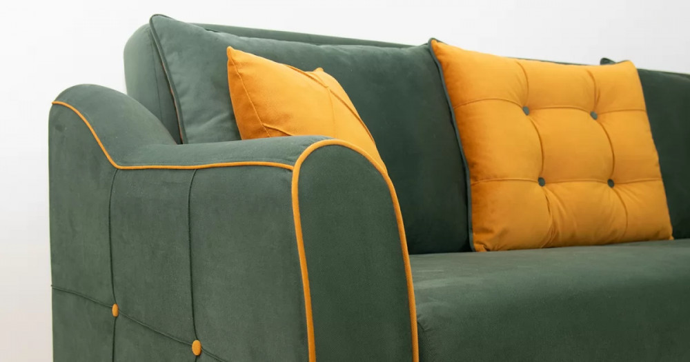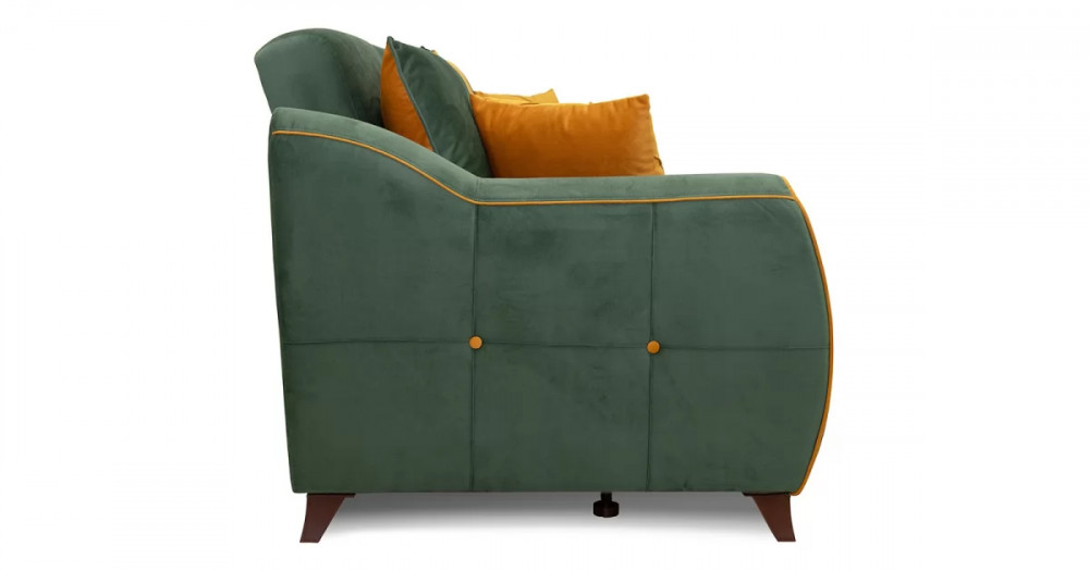 ДВПооснование матраса: ППУ на блоке плоских пружин «змейка», периотекприспинные подушки, шт: 3декоративные подушки, шт: 2наполнитель подушек: полиэфирное волокно «шарики»материал опор: пластикцвет опор: коричневыйДекордекоративный кант, пуговицы, отстрочка, утяжки на подушках и подлокотникахНазначениев гостиную