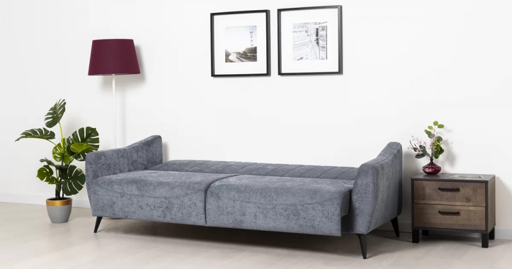 Посадочная и спальная зоны при раскладывании равны, что обеспечивает хороший сон. Механизм трансформации - книжка. Раскладной диван представляет больше возможностей для обустройства интерьера. Черные металлические ножки дивана высотой 160 мм позволят использовать его в интерьере лофт.