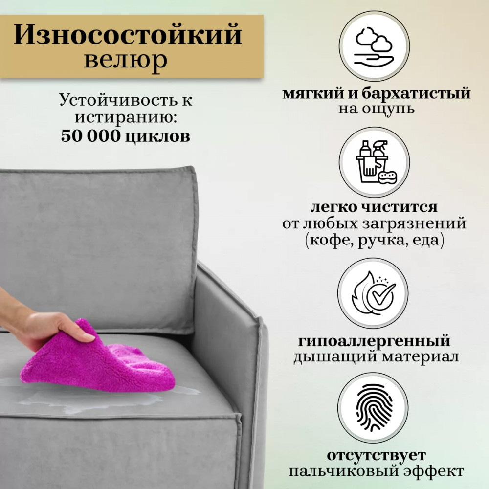 Модульный диван 9999 - Настоящий образец стиля «Либерти». Модный силуэт.Двухместный диван имеет комфортное посадочное место. Диван-кровать невероятно мягкий даже в подлокотниках, наполнен смесью ППУ и холлофайбера. Сочетание современных материалов и мягкой обивки из износостойкого велюра делают раскладной диван максимально приятным для отдыха.Диван трансформер раскладывается в полноценное двуспальное место и подходит для ежедневного сна. Очень практичный механизм. Для того чтобы разложить выкатной диван, нужно просто выдвинуть сидение на себя и опустить спинку, получив таким образом ровное спальное место. В основании сиденья и спинки находится блок независимых пружин. Сверху – эластичный пенополиуретан и комфортный слой периотека, добавляющие упругости и комфортности. Для хранения белья есть вместительный ящик под сиденьем.Выдвижной диван 9999 прекрасно подойдет для студий, комнат, детской, кабинета, офиса. На таком диване обязательно захочется отдохнуть и расслабиться.