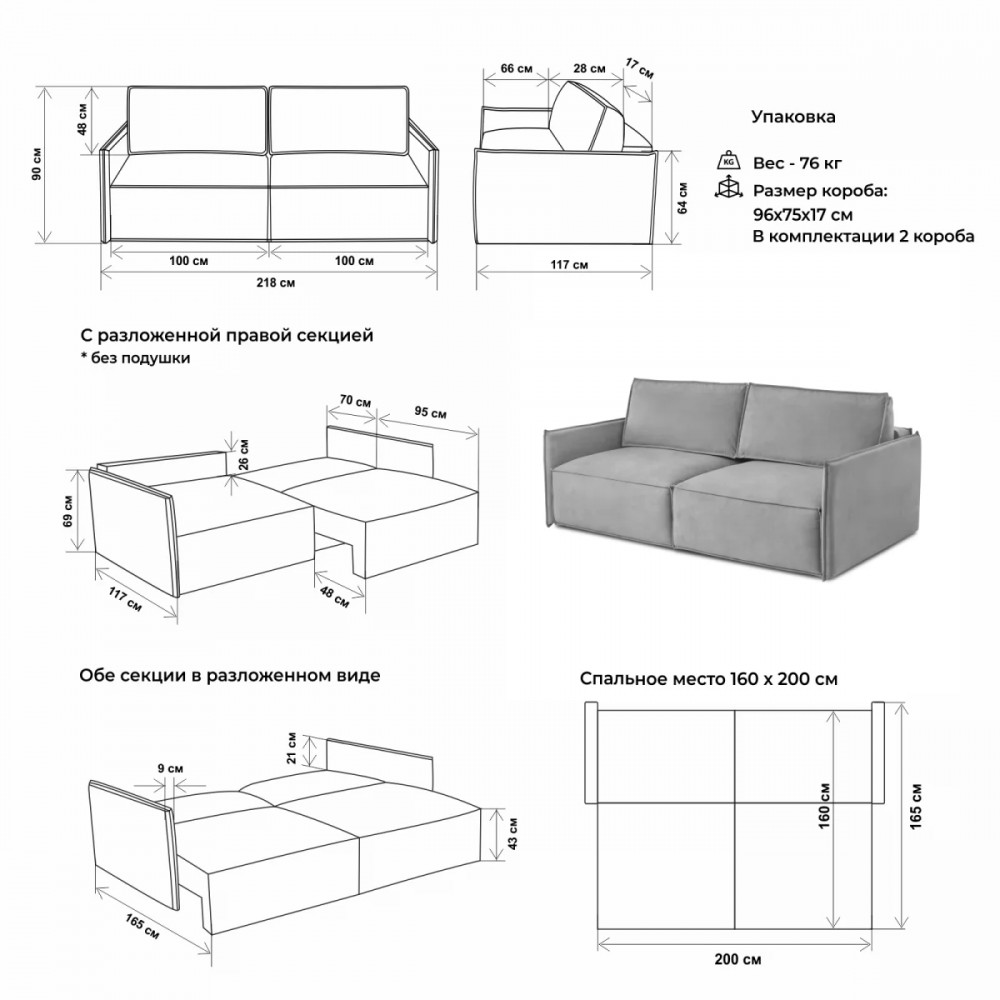 | Размер спального места | 1600х2000 мм |