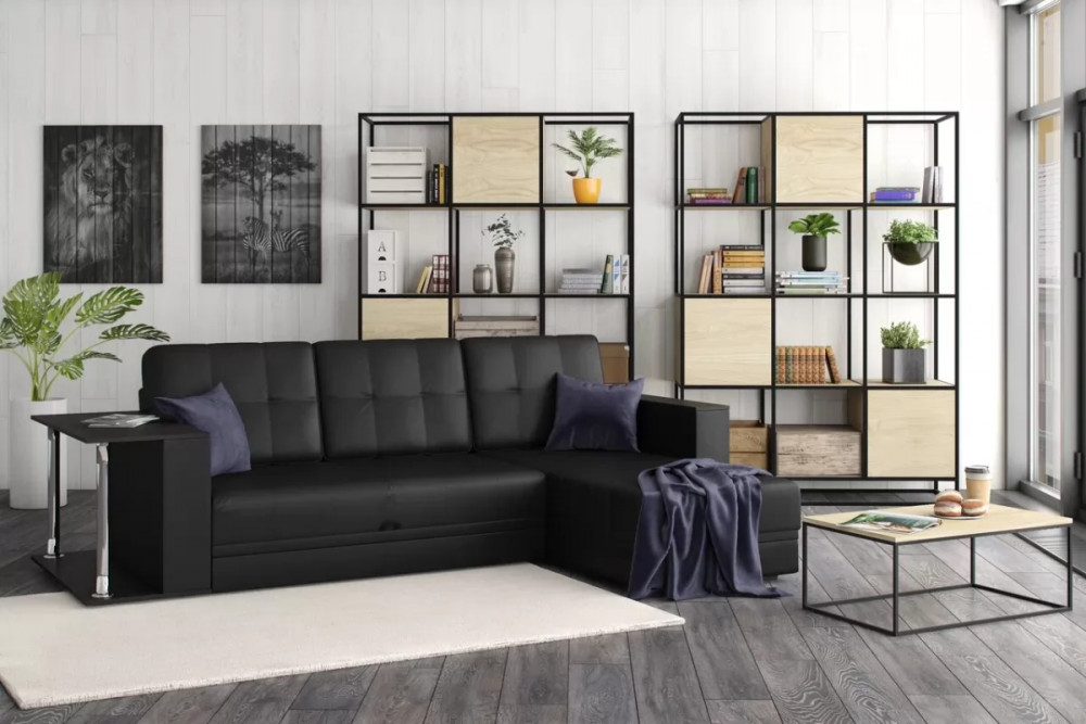 Диван АТЛАНТ угловой со столиком Марика чёрный в Тюмени
