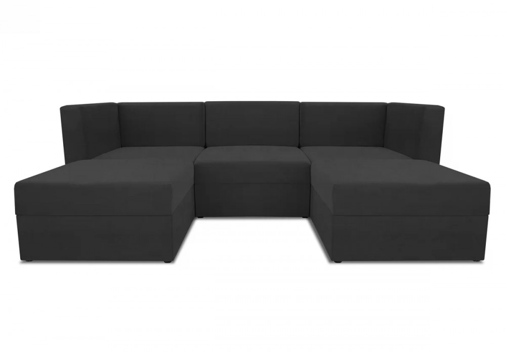 Диван состоит из секций: два угловых модуля, один прямой модуль, два пуфа