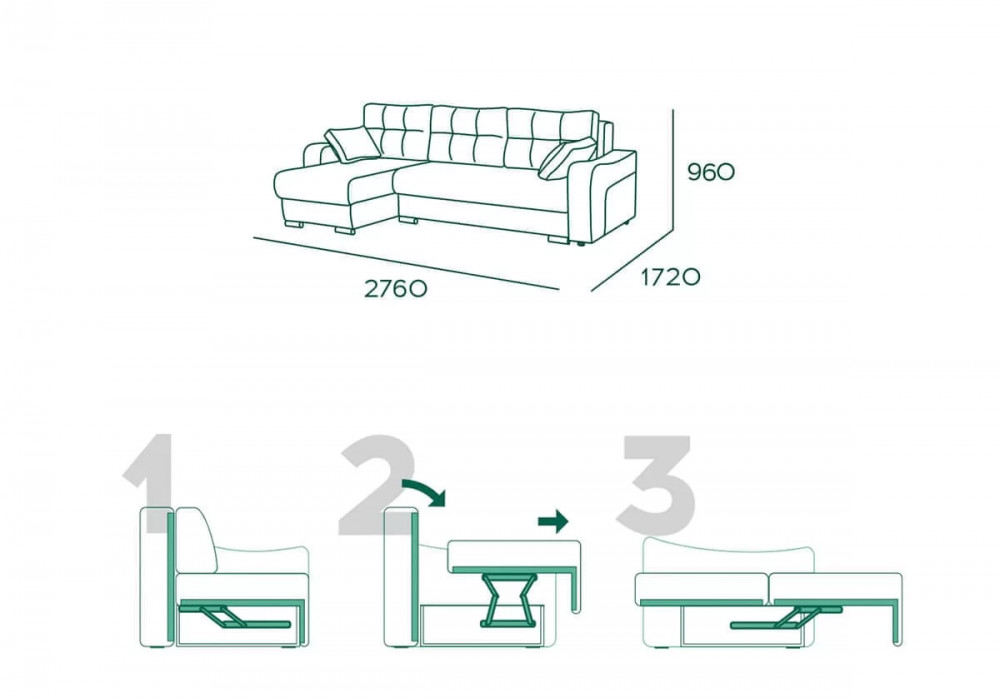 - Габаритные размеры: 2760х1720х960 (мм).