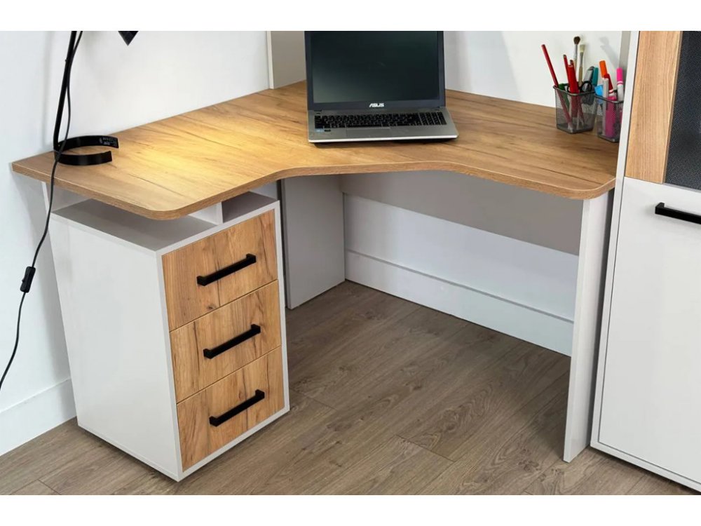 Компьютерный стол Лайт-2 угловой: элегантное и практичное решение для тех, кто ценит комфорт и функциональность. Данная модель идеально подходит для того, чтобы максимально эффективно использовать пространство и иметь всё необходимое под рукой, при этом сохраняя атмосферу стиля и уюта.
