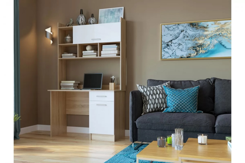 Стол компьютерный "ПКС- 2" (ш1118*г570*в1882мм), ЛДСП дуб сонома/белый глянец (Памир) 3УП в Тюмени