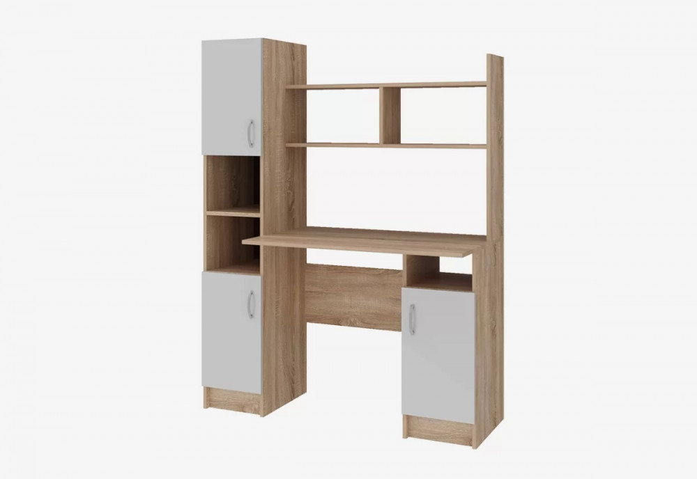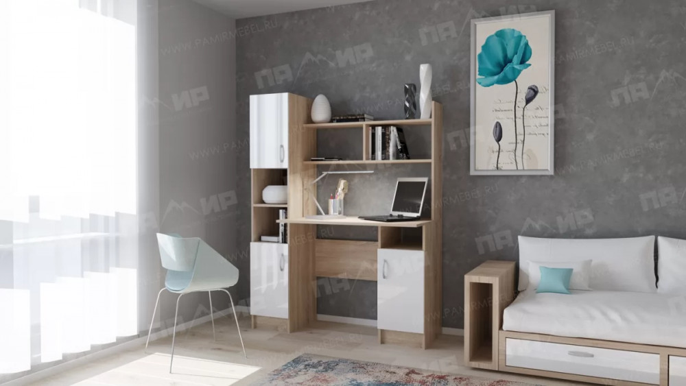 Стол компьютерный "ПКС- 6" (ш1230*г570*в1600мм), ЛДСП дуб сонома/белый глянец (Памир) в Тюмени