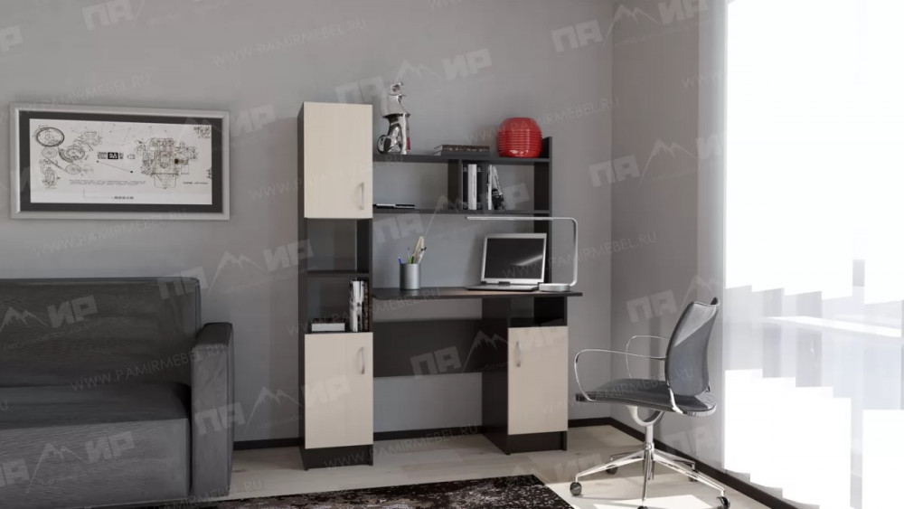 Стол компьютерный "ПКС- 6" (ш1230*г570*в1600мм), ЛДСП венге/дуб белфорд в Тюмени