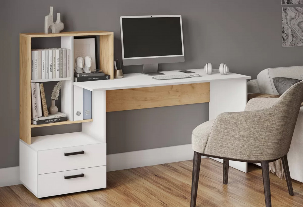 Стол компьютерный СКМ-5 (ш1648*г600*в1105мм), ЛДСП Дуб крафт золотой/ЛДСП Белый в Тюмени