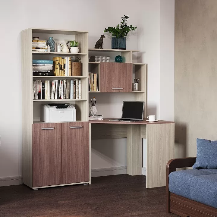 Стол компьютерный угловой "ПКС- 8" УНИ (ш890*г600*в1852мм), ЛДСП яс шимо тем/ясень шимо свет (Памир) в Тюмени