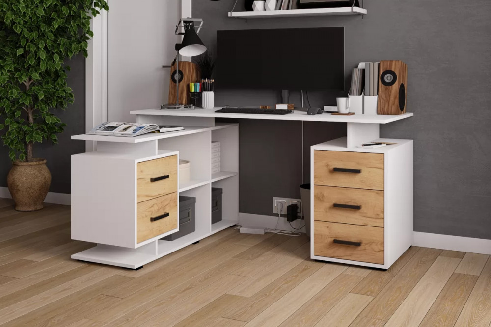 Стол компьютерный угловой СКМУ-3 (ш1500*г1100*в750мм), ЛДСП Белый/ ЛДСП Дуб крафт золотой в Тюмени