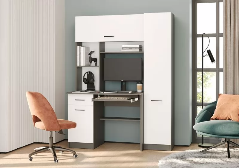 Стол рабочий АЛЬФА (ш1370*г610*в1810мм), ЛДСП Графит/Белый в Тюмени