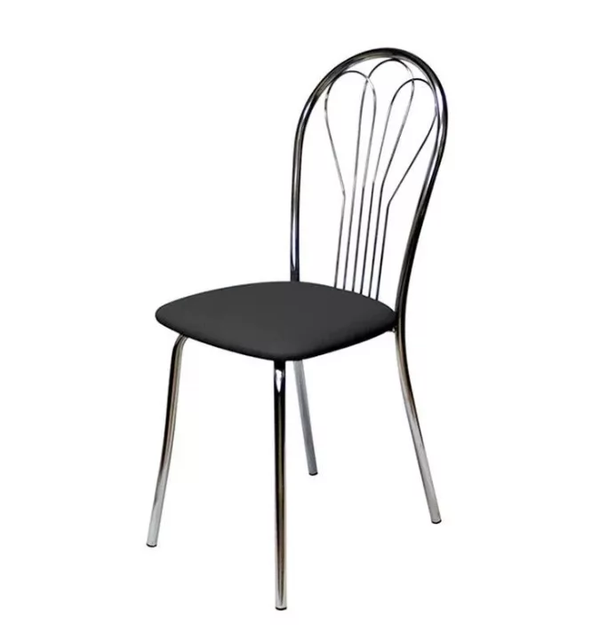 Прочный и надежный стул на металлическом каркасе "Versal Chrome" с обивкой из кожзаменителя подходит как для домашнего использования, так и для мест общественного питания. Ножки снабжены заглушками для сохранности напольного покрытия. Спинка декорирована изогнутыми металлическими прутками.