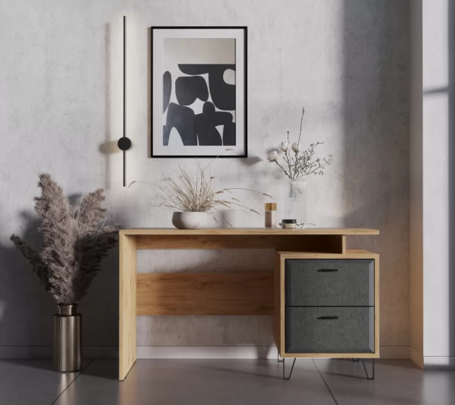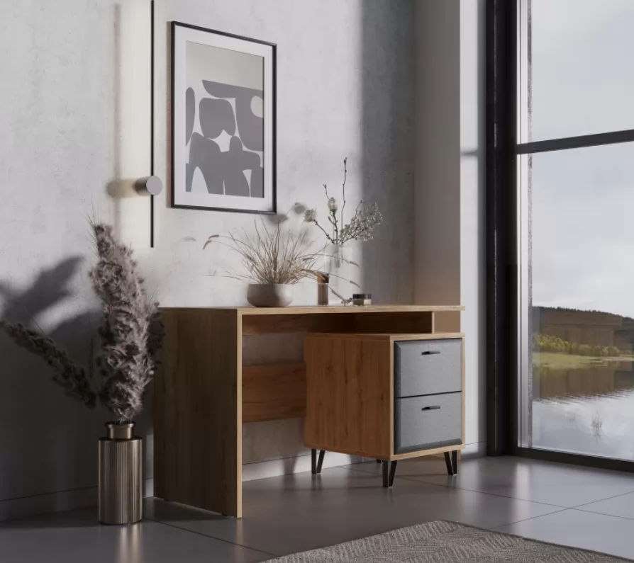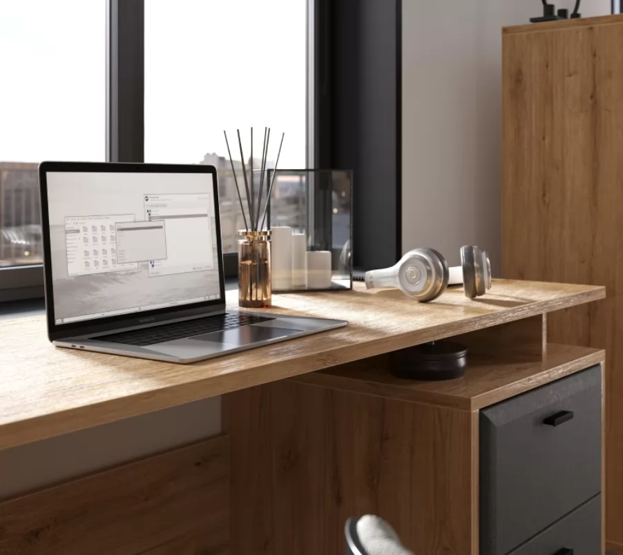Просторная столешница с легкостью разместит на себе мониторы, клавиатуру, ноутбуки, органайзеры и настольные лампы. Два выдвижных ящика помогут организовать школьную и рабочую канцелярию, книги, журналы и другие важные элементы.