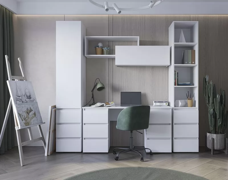 ХЕЛЕН ПС02 Стол письменный с 6 ящиками (ш1400*г500*в730мм), Белый/Белый в Тюмени