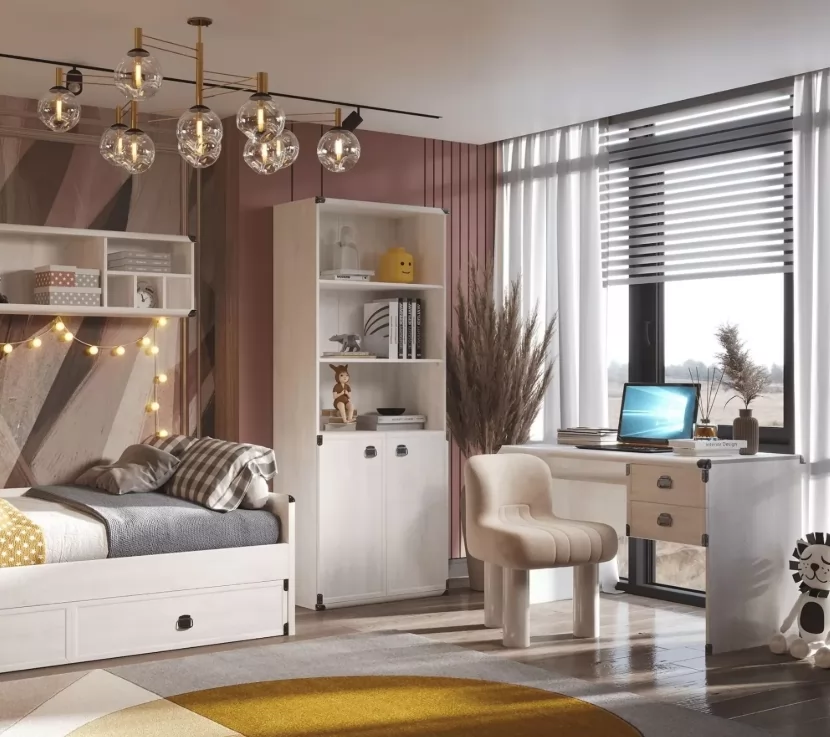 - Просторная столешница (120×65 см) позволяет разместить компьютер, учебные принадлежности или творческие материалы.