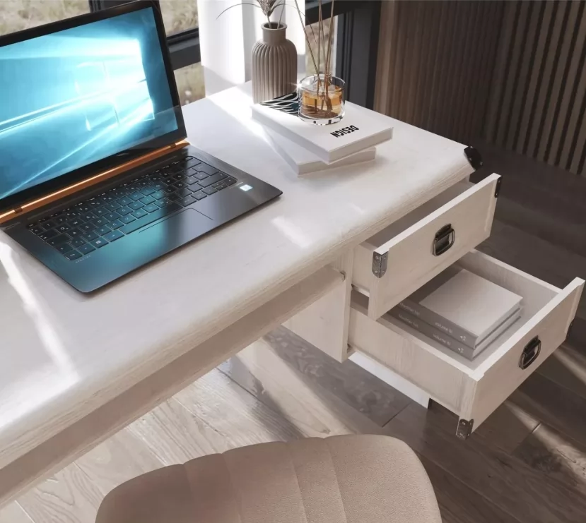 - 2 выдвижных ящика на роликовых направляющих — для хранения мелочей, документов или канцелярии.