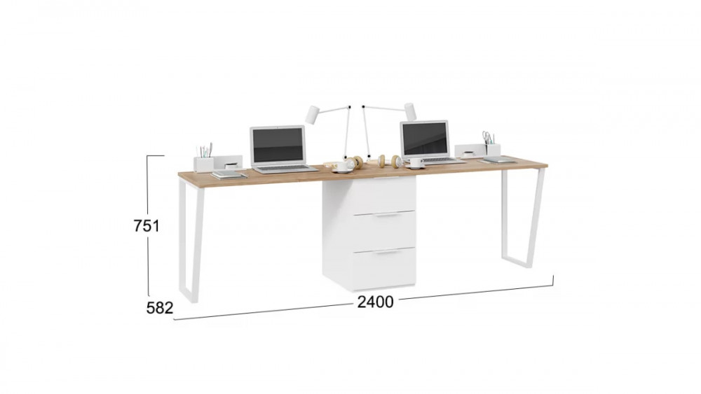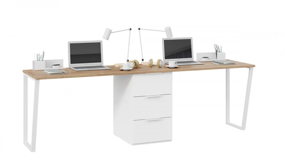 Комплект столов письменных с 1 тумбой универсальной «Порто» Белый Жемчуг, Яблоня Беллуно, Белый софт в Тюмени