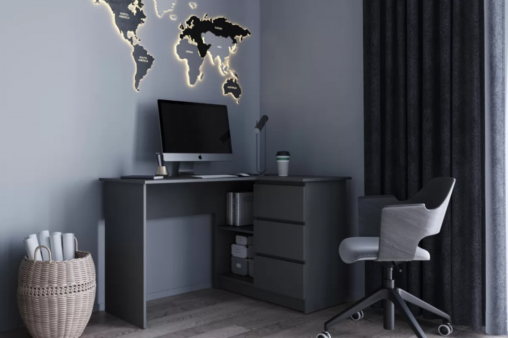 МОРИ МС-16 Стол угловой с 3мя ящ., УНИ (ш1244*г850*в770мм), ЛДСП Графит (МП) в Тюмени