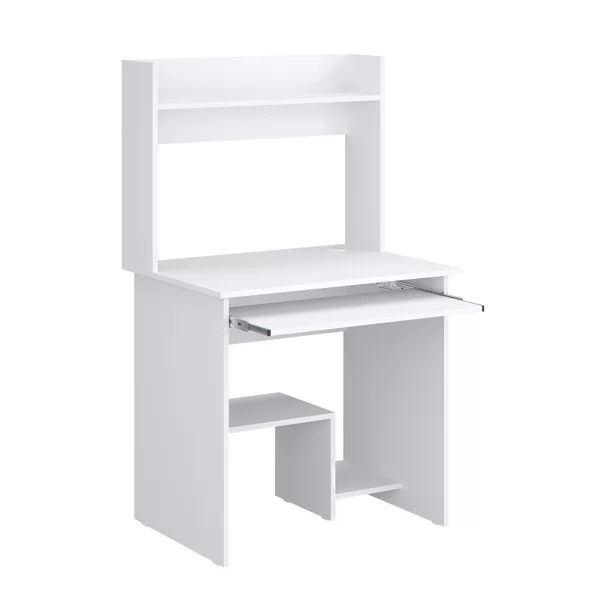 Практичный и максимально компактный компьютерный стол универсального белого цвета подойдет даже в небольшое пространство.